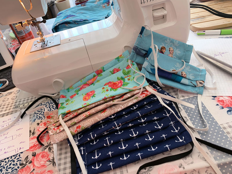 Also habe ich mich an die Nähmaschine gesetzt und uns ein paar Behelfsmasken oder – wie man in Norddeutschland sagt „SchnutenPullis“ – genäht. Meine ersten Varianten waren gefaltet… Aber nach ein paarmal tragen, habe ich mich noch einmal rangesetzt und habe eine andere Variante probiert. Diese ist m.E. einfacher zu tragen (ich kann damit besser atmen) und einfacher zu nähen sowieso. Unter den Bildern verlinke ich Euch gerne die Anleitung meines Favoriten.