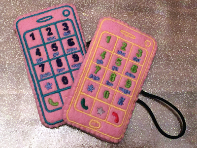 Zwar haben wir ja schon ein Püppi-Handy als Radiergummi, aber das hält nicht von alleine und da hat mich das Stickfieber gepackt und ich habe ein Design ITH Embroidery Design Handy entworfen. Dann damit schnell an meine Elna und schon war die Tastatur fertig. Nun habe ich nur noch die Rückseite von Hand angenäht und ein Gummiband daran befestigt, damit das Handy nicht von der Hand rutscht. Voilá!