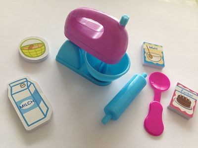 Die Figuren rund um Peppa fand ich für meine Tochter eigentlich immer etwas merkwürdig, weil ich dachte das ist für jüngere Kinder. Also habe ich die Zeitschrift nur aufgrund des Gimmicks gekauft: Mixer, Schüssel und allerlei zum Backen für die Püppi.